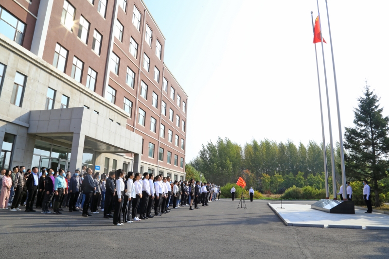 伴隨著莊嚴(yán)雄壯的國(guó)歌聲,鮮艷的五星紅旗冉冉升起,全體人員莊嚴(yán)肅立,齊唱國(guó)歌,行注目禮。