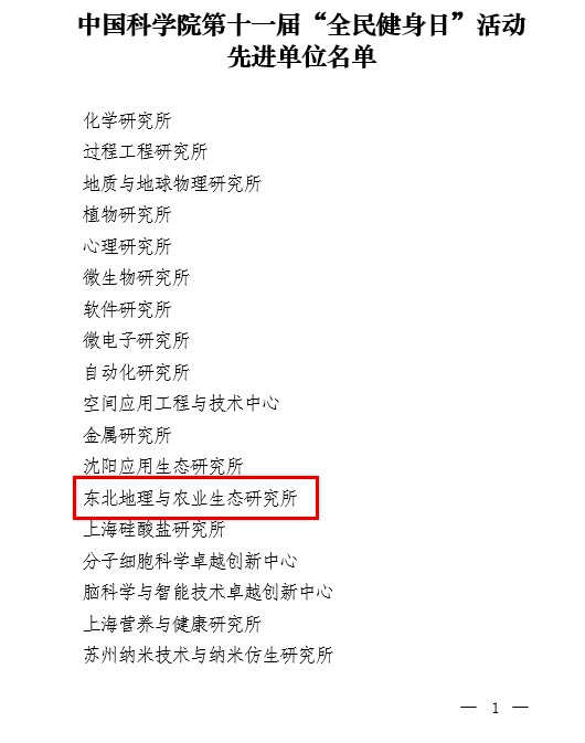 為表彰先進(jìn),樹立典型,中國科學(xué)院體育協(xié)會(huì)近日授予全院40家單位“中國科學(xué)院第十一屆‘全民健身日’活動(dòng)先進(jìn)單位”稱號(hào),東北地理與農(nóng)業(yè)生態(tài)研究所位列其中,獲此殊榮。