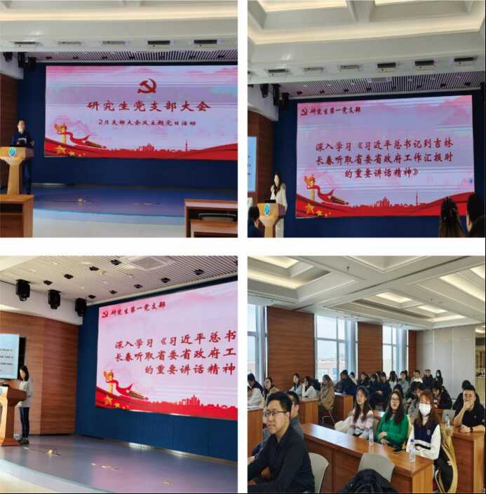 2月26日,研究生第一、二、三黨支部在綜合樓六樓報(bào)告廳聯(lián)合開展黨員大會(huì),學(xué)習(xí)貫徹習(xí)近平總書記在聽取吉林省委和省政府工作匯報(bào)時(shí)的重要講話精神,活動(dòng)由研究生黨總支書記苑春宇主持。