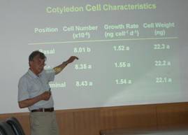 他在報告中重點闡述了如何防止水土流失應該采取的措施。通過他幾年的試驗,得出了聚丙烯酰胺(PAM) 可以有效地控制土壤侵蝕、保護地下水質量,并且可以顯著地降低動物廢物中的細菌和養份含量,當其和植被方式一起應用時,對降低污染物的含量更加有效。特別是種植覆蓋作物可減少土壤水土流失,同時防止土壤N素的淋溶,保證作物生長期氮素的不斷供應。與此同時他還為我們提供了聚丙烯酰胺試驗材料,為開展比較相類國內產品試驗提供了可能。相關科研人員及研究生參加了座談交流。關于大豆光富集于籽粒形成方面與大豆生理生態課題組進行了深入探討并對課題組研究的結果給與充分的肯定,同時提出了有待解決的研究問題。