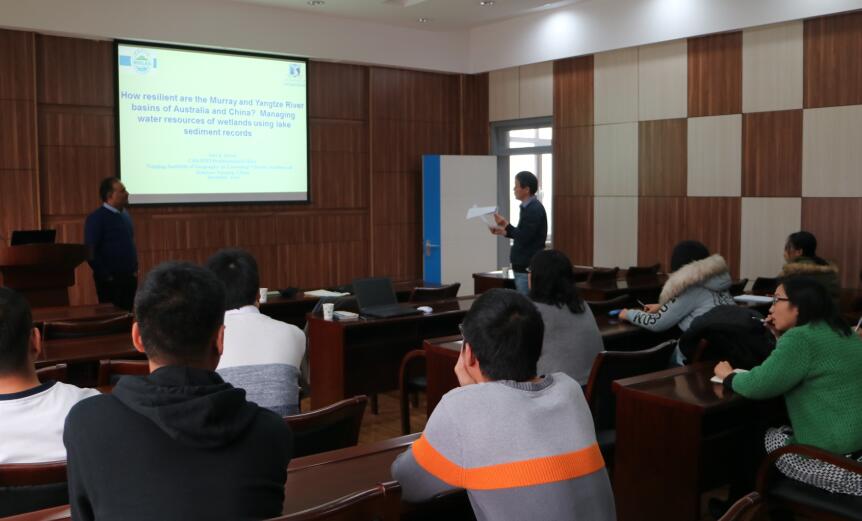 應濕地演化與生態功能學科組組長王國平研究員的邀請,澳大利亞墨爾本大學水資源管理組高級研究員Giri Kattel于12月11-13日來東北地理所進行學術交流訪問,并做了題為“How resilient are the Murray and Yangtze River basins of Australia and China? Managing water resources of wetlands using lake sediment records”的學術報告。
