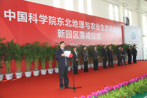 10月25日下午,陽光明媚、金風和暢,東北地理所彩旗飄揚、綠草如茵,質樸典雅的樓群被裝扮一新,新園區落成儀式在體育館簡短而隆重的舉行。中國科學院院長、黨組書記、中科院院士白春禮,省委副書記、省長王儒林,省委常委、長春市委書記高廣濱,省委常委省委秘書長房俐,省政府秘書長李福春,中國科學院副秘書長吳建國,長春市市委常委、常務副市長肖萬民,長春市副市長、長春國家高新技術產業開發區管委會主任孫亞明,長春分院院長王利祥,我所所長何興元等領導出席了慶典儀式并為新園區落成剪彩。我所黨委書記胡乃澤主持了落成儀式,何興元所長致歡迎詞。