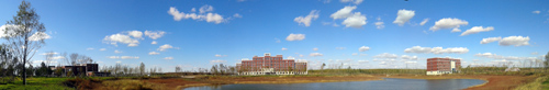 經(jīng)過兩年多的緊張施工建設(shè),一座環(huán)境優(yōu)美,功能齊全的現(xiàn)代化新園區(qū)順利建成并投入使用。新園區(qū)座落在長春市高新北區(qū),占地面積45公頃,劃分為科研創(chuàng)新區(qū)、教育綜合區(qū)、試驗示范區(qū)和成果轉(zhuǎn)化區(qū)四大功能區(qū)。一期建設(shè)工程7.5萬平方米,投資3.5億元,新建單體建筑22個,包括四棟辦公實驗樓、綜合服務(wù)樓、研究生公寓和人才周轉(zhuǎn)公寓等。