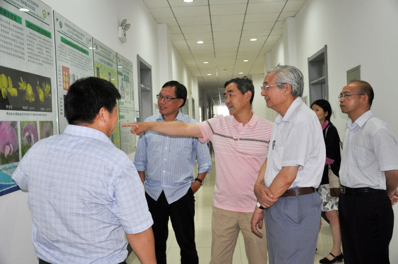 在農(nóng)業(yè)樓,馮獻(xiàn)忠研究員介紹了大豆分子設(shè)計(jì)育種重點(diǎn)實(shí)驗(yàn)室的工作,并專題匯報(bào)了“雜交大豆異交率差異的分子遺傳機(jī)制”的研究計(jì)劃。許智宏院士和何祖華研究員對(duì)于實(shí)驗(yàn)室的工作予以了肯定,對(duì)于通過(guò)分子設(shè)計(jì)提高雜交大豆產(chǎn)量的研究工作表示支持,希望繼續(xù)加強(qiáng)研究工作,將現(xiàn)代生物技術(shù)充分應(yīng)用到農(nóng)業(yè)生產(chǎn)中去。