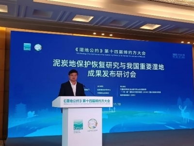泥炭地碳儲(chǔ)量巨大,對(duì)于減緩氣候變化具有重要意義。中國(guó)始終把應(yīng)對(duì)氣候變化、開(kāi)展泥炭地保護(hù)管理視作自身可持續(xù)發(fā)展的內(nèi)在要求和構(gòu)建人類(lèi)命運(yùn)共同體的責(zé)任擔(dān)當(dāng)。11月10日,在《濕地公約》第十四屆締約方大會(huì)期間,“泥炭地保護(hù)恢復(fù)研究與我國(guó)重要濕地成果發(fā)布”研討會(huì)成功召開(kāi)。作為東道國(guó)系列重要活動(dòng)之一,會(huì)議聚焦我國(guó)泥炭地保護(hù)的基礎(chǔ)理論及關(guān)鍵技術(shù)問(wèn)題開(kāi)展研討,旨在推動(dòng)我國(guó)泥炭地學(xué)的理論體系構(gòu)建和泥炭地恢復(fù)技術(shù)的快速發(fā)展,服務(wù)國(guó)際履約,助力實(shí)現(xiàn)“雙碳”戰(zhàn)略。會(huì)議同步進(jìn)行了濕地領(lǐng)域重要成果的發(fā)布與推介。國(guó)家林業(yè)和草原局濕地管理司作為指導(dǎo)單位,由國(guó)家濕地研究中心和中國(guó)林業(yè)出版社聯(lián)合主辦,中國(guó)科學(xué)院東北地理與農(nóng)業(yè)生態(tài)研究所、“一帶一路”國(guó)際科學(xué)組織聯(lián)盟(ANSO)國(guó)際濕地研究聯(lián)盟、地球觀測(cè)組織(GEO)承辦,會(huì)議采用線上線下相結(jié)合的方式,250余人參加了會(huì)議。