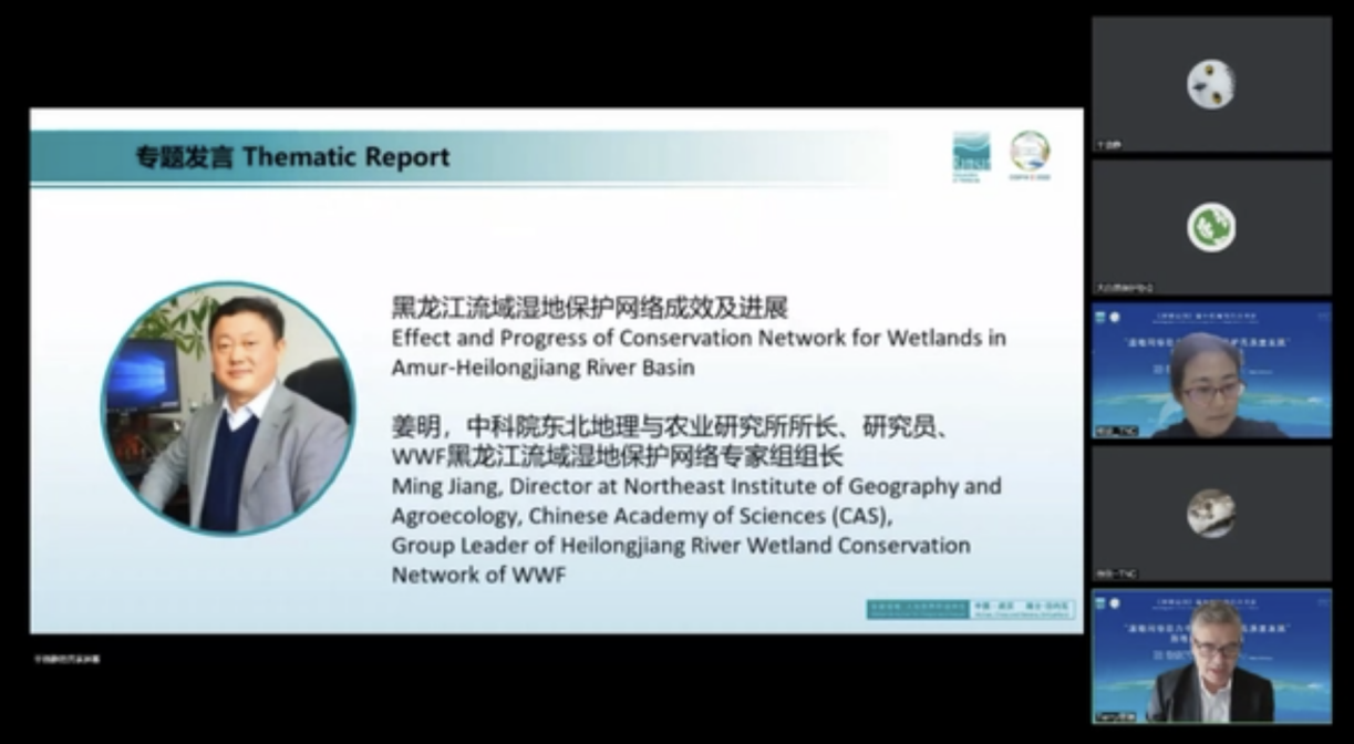 11月9日,姜明作為黑龍江流域濕地保護(hù)網(wǎng)絡(luò)專(zhuān)家組組長(zhǎng),應(yīng)邀在“濕地保護(hù)網(wǎng)絡(luò)論壇”邊會(huì)上,做了題為“黑龍江流域濕地保護(hù)網(wǎng)絡(luò)成效及進(jìn)展”的發(fā)言,介紹了黑龍江流域濕地分布,指出濕地存在的問(wèn)題和未來(lái)潛在變化,表概述了黑龍江流域濕地網(wǎng)絡(luò)于2019年成立后,協(xié)調(diào)統(tǒng)籌多方力量共同開(kāi)展保護(hù)行動(dòng),采取強(qiáng)有力的措施保護(hù)濕地,穩(wěn)步開(kāi)展“雙碳”行動(dòng),積極構(gòu)建中國(guó)北方生態(tài)安全屏障,在濕地資源保護(hù)、維護(hù)生態(tài)安全中發(fā)揮了關(guān)鍵作用。在未來(lái)會(huì)加強(qiáng)科技投入,建立濕地補(bǔ)償機(jī)制、推動(dòng)國(guó)際合作、開(kāi)展區(qū)域內(nèi)外項(xiàng)目合作等。