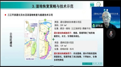 11月10日,呂憲國(guó)在“小微濕地保護(hù)管理與合理利用”邊會(huì)期間,分享了松嫩平原小微濕地基本特征與修復(fù)案例,探討了東北小微濕地形成原因、驅(qū)動(dòng)機(jī)制及其多種生態(tài)功能,并建議從景觀尺度合理優(yōu)化配置小微濕地,保障農(nóng)林牧漁產(chǎn)業(yè)可持續(xù)及區(qū)域生態(tài)安全,促進(jìn)三生融合的綜合協(xié)調(diào)發(fā)展,踐行“綠水青山就是金山銀山”理念。同日,呂憲國(guó)應(yīng)邀還在“寒地濕地生態(tài)系統(tǒng)功能保護(hù)與修復(fù)國(guó)際研討會(huì)”上,做了題為“中國(guó)東北松嫩平原西部退化鹽堿濕地恢復(fù)”的主旨報(bào)告。安雨副研究員在此寒地濕地邊會(huì)上,介紹了松嫩平原扁稈荊三棱群落恢復(fù)技術(shù)與應(yīng)用的相關(guān)研究進(jìn)展。