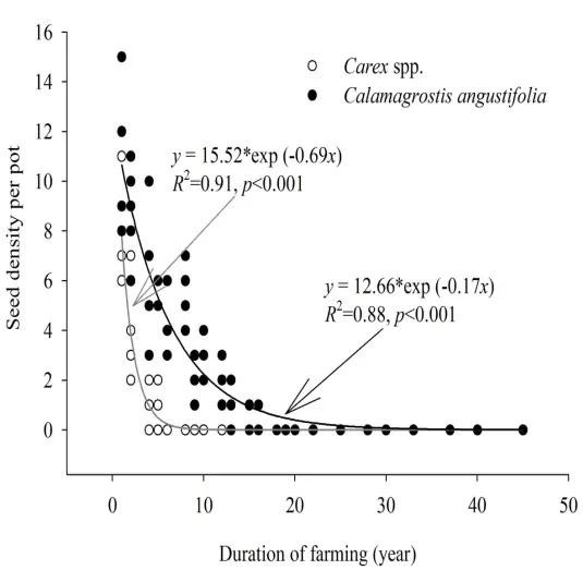 沼澤優勢植物種子密度隨開墾年限變化特征