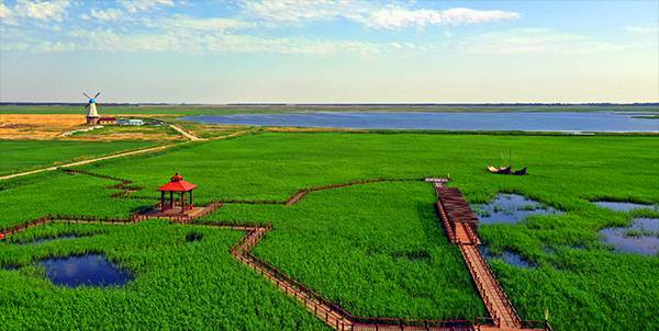 濕地公園里,蘆葦成片,一望無際,整個濕地公園基本處于原生狀態,“春來葦葉綠,秋到蘆花黃”的蘆葦濕地美景也是北方少見的。