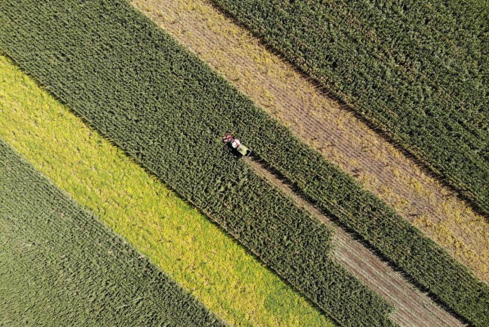 吉林省長(zhǎng)春市雙陽(yáng)區(qū)鹿鄉(xiāng)鎮(zhèn),農(nóng)戶使用機(jī)械收割青貯玉米。記者 林宏 攝