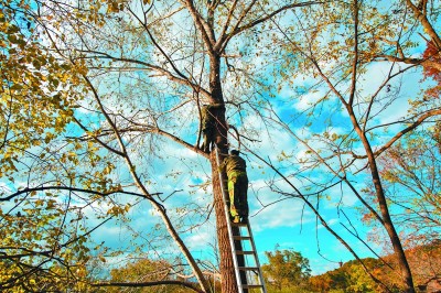 在吉林黃泥河國家級自然保護區,巡護員為中華秋沙鴨搭建人工巢。光明圖片