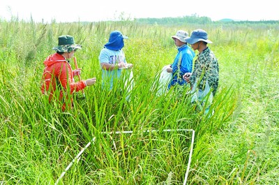 中國科學院東北地理與農業生態研究所的科研人員在三江平原對恢復濕地進行生態監測。光明圖片