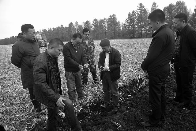 韓曉增(右三)在東北三江平原寶泉嶺農場暗棕壤肥沃耕層構建現場。