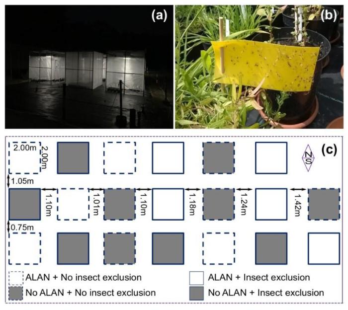 夜間路燈(有與無)×昆蟲排除(排除與不排除)全因子實驗設置圖解?!≈锌圃簴|北地理所 供圖
