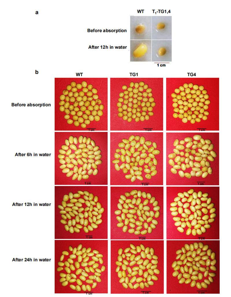記者從中科院東北地理所了解到,日前,該所大豆遺傳與分子改良學(xué)科組助理研究員王飛飛、張恒友研究員和潘相文高級(jí)工程師發(fā)現(xiàn)通過控制多聚半乳糖醛酸酶基因PG031.可以調(diào)控大豆種皮吸水性以及籽粒大小。