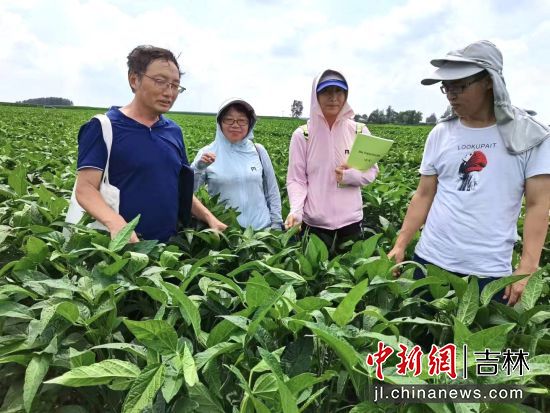 夏正俊(左一)在試驗田調查。(資料圖) 中科院東北地理與農業生態研究所/供圖