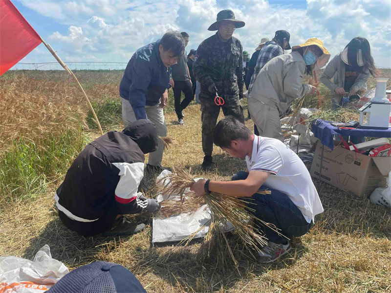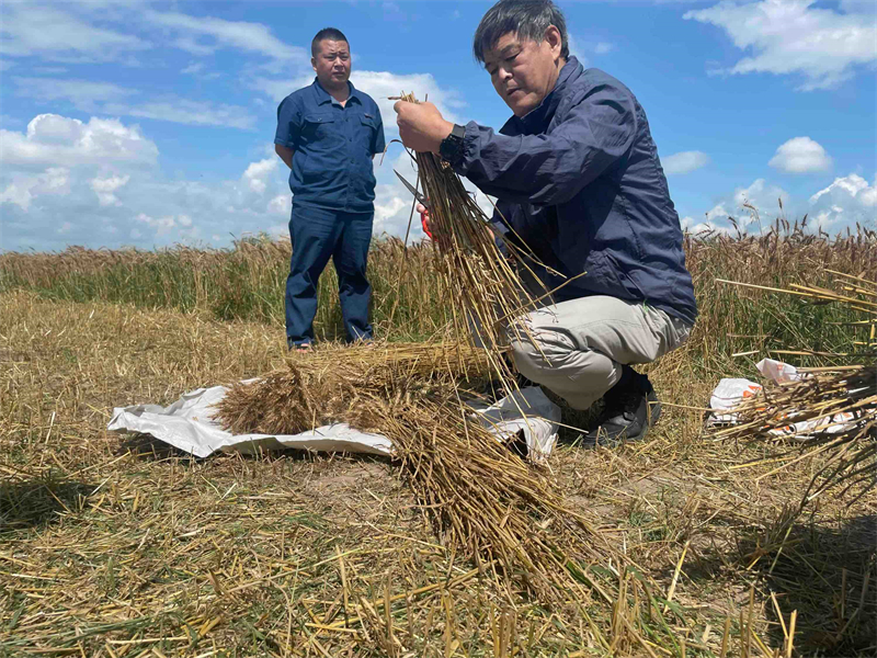 風吹麥浪,滿目金黃。今天,記者隨專家一起來到洮南市圣一農場種植基地,對“雙季雙優”種植模式第一季即將收獲的小冰麥進行測產。專家組經過實測,該試驗地高密度種植區測產產量5104公斤/公頃(17%含水量),正常條件栽培區大面積實收公頃產量3561公斤(17%含水量),雙雙達到了理想預期。