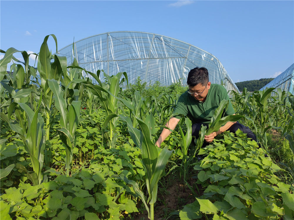 在吉林省東遼縣,中科院東北地理與農業生態研究所研究員李向楠在試驗田里觀察覆蓋作物(2022年7月5日攝)。新華社記者 薛欽峰 攝