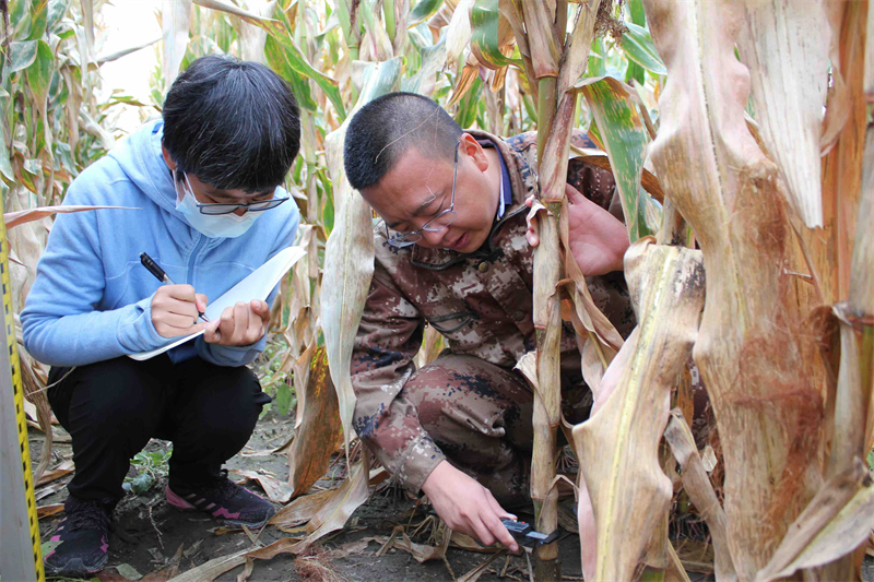在中科院“黑土糧倉(cāng)”科技會(huì)戰(zhàn)長(zhǎng)春示范區(qū)農(nóng)安示范基地-農(nóng)安縣合隆鎮(zhèn)陳家店村,萬(wàn)畝金黃玉米即將豐收。皮膚黝黑,一身迷彩服,手拿測(cè)尺的陳學(xué)文正和同事、學(xué)生們測(cè)量矮桿密植玉米品種的穗位高、株高、莖粗等指標(biāo),作為秸稈覆蓋還田少免耕技術(shù)體系的負(fù)責(zé)人,他告訴記者,由于農(nóng)業(yè)科研工作的特殊性,他們?cè)缫蚜?xí)慣了堅(jiān)守。“采樣、不同耕作方式和作物品種的測(cè)產(chǎn)、不同技術(shù)模式的整地……要做的事情太多了,正值秋收,黑土保育工作不能停。”陳學(xué)文說(shuō)。