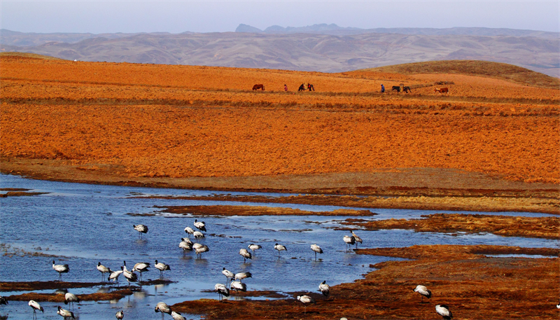 拍攝到的鶴群(云南大山包國際重要濕地)。國家林草局供圖