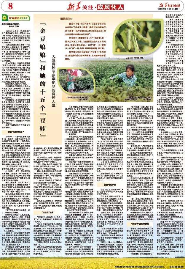 在黑龍江省齊齊哈爾市依安縣太東鄉(xiāng),李艷華在田里查看豆株。受訪者供圖