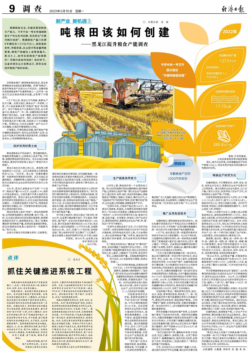 【經濟日報】噸糧田該如何創建——黑龍江提升糧食產能調查