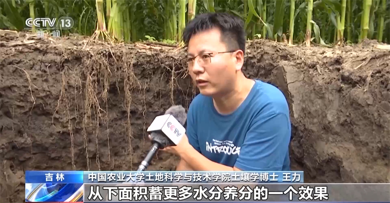 中國農業大學土地科學與技術學院土壤學博士 王力:這就是保護性耕作促進根系下扎,從下面積蓄更多水分養分的一個效果。