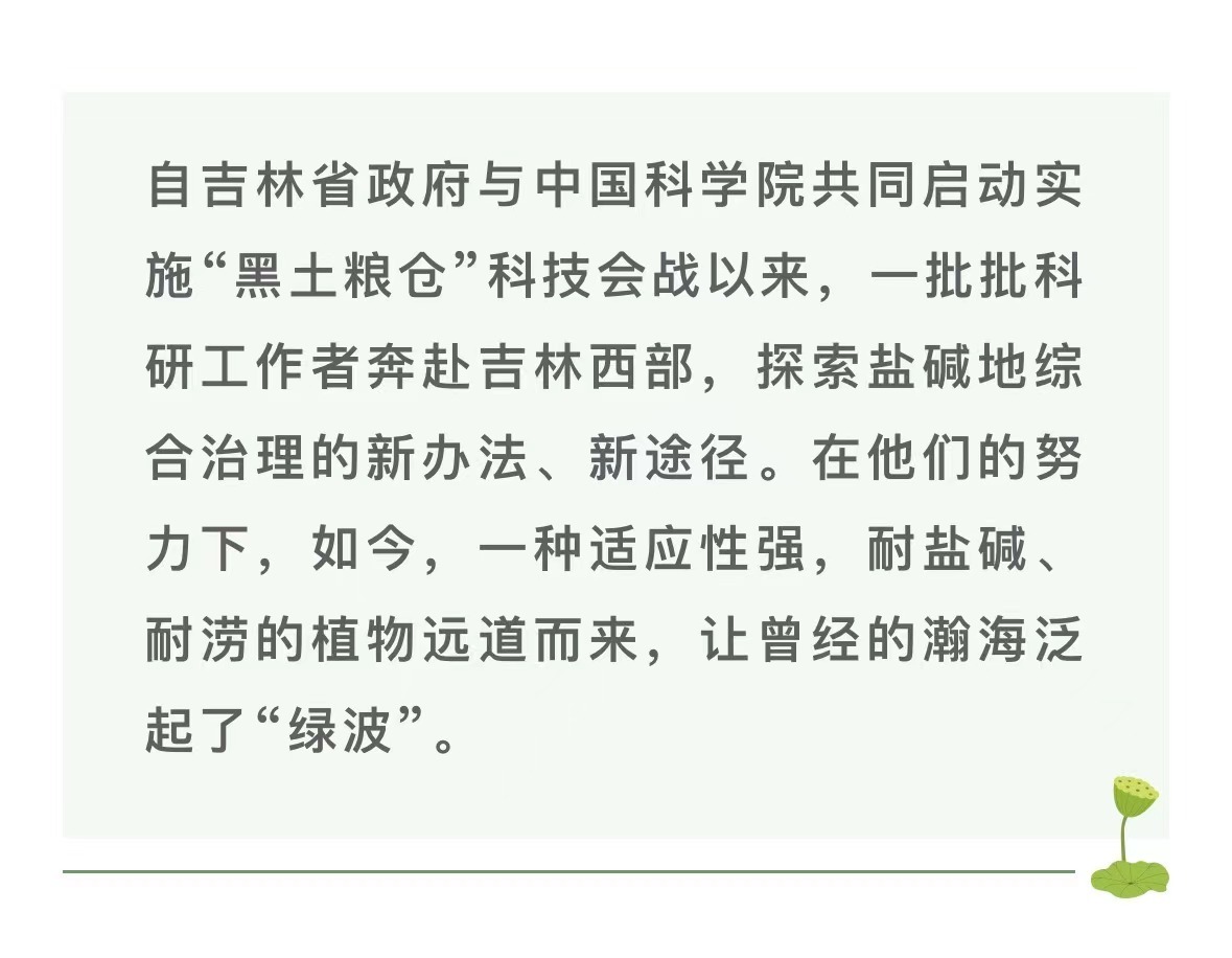 秋風起時,吉林西部,長嶺縣北正鎮關山屯撂荒的鹽堿地上多了一片“新綠”。看著足有一人多高的茂密青草,想著幾個月前,這里還是寸草難生的“堿巴拉”,農戶葉樹文總覺得眼前一切美得難以置信。“我們這兒是重度鹽堿地,壓根兒沒想過能長出東西來!天天來看,都不敢相信!”