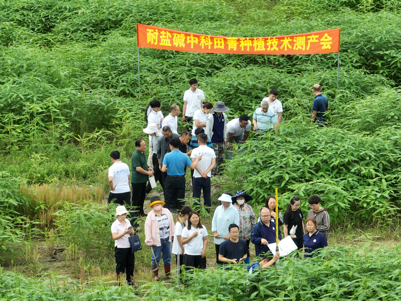 中國科學院長嶺草地農牧生態研究站鹽堿地田菁測產工作正在進行中。受訪者供圖