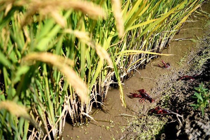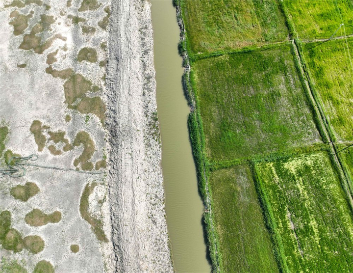 由鹽堿地改良而成的河北樂亭縣數字循環農業智慧園區稻蝦共生區 牟宇 / 攝