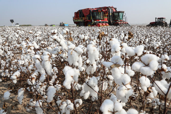 2023 年 10 月 22 日,黃河三角洲鹽堿地棉花機采作業忙 朱崢 / 攝