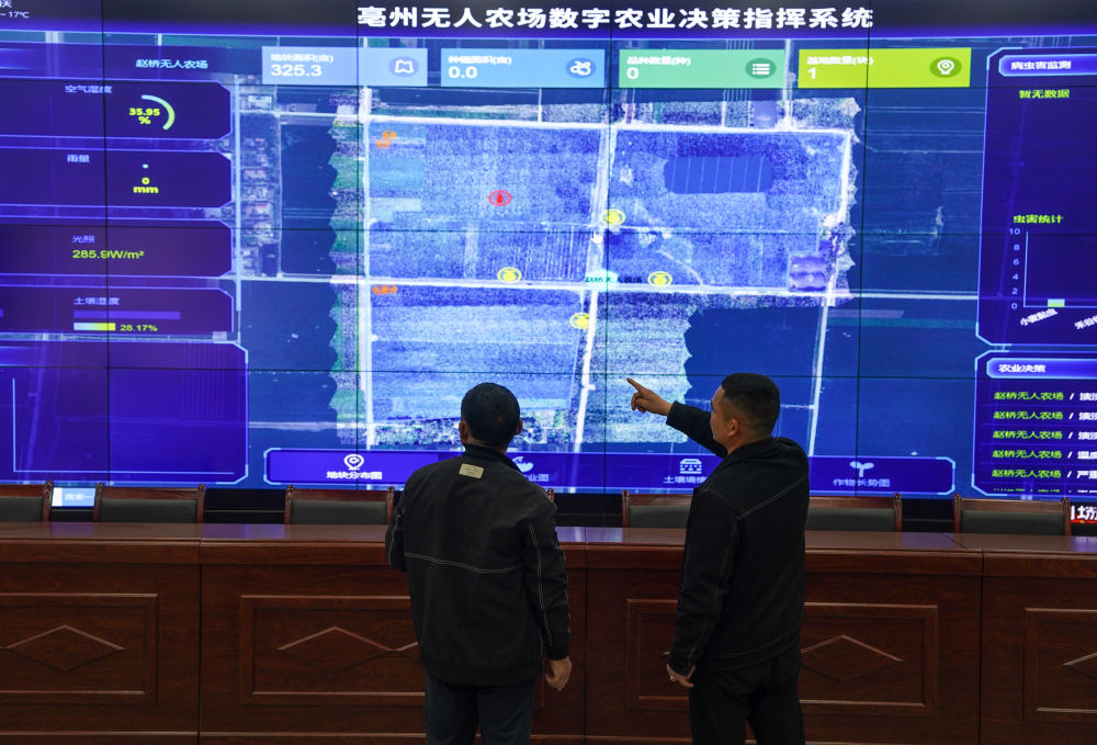 當下,在安徽省亳州市譙城區(qū)智慧農(nóng)場里,“90后”新農(nóng)人焦瑞端坐在調(diào)度大廳內(nèi),通過近200平方米的智慧大屏將農(nóng)作物的長勢盡收眼底。