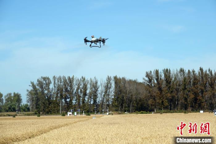 北大荒曙光農(nóng)場,項(xiàng)目團(tuán)隊(duì)用大型無人機(jī)在示范農(nóng)田上空開展相關(guān)作業(yè)。中新網(wǎng)記者 孫自法 攝