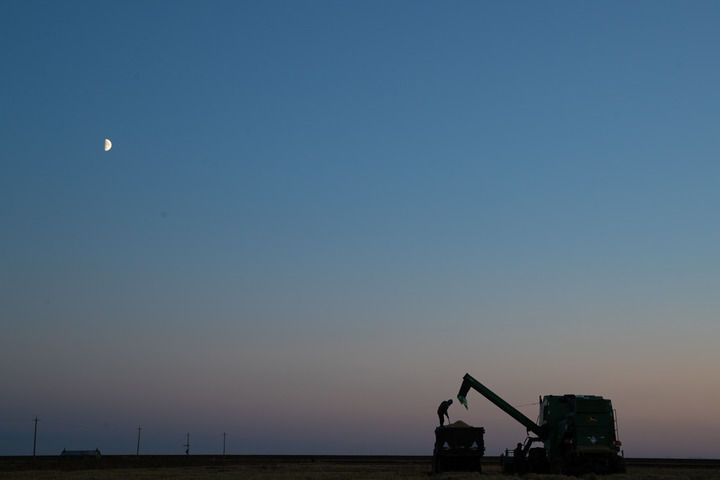 2024年10月11日,在位于黑龍江省鶴崗市綏濱縣的北大荒集團普陽農(nóng)場有限公司作業(yè)區(qū),種植戶駕駛農(nóng)機進行收割作業(yè)。新華社記者張濤攝