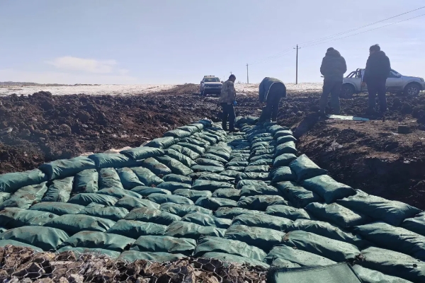 在黑龍江省克山縣華安村,工人們正抓緊建設溝頭跌水中的上游生態袋導水地下工程。農民日報·中國農網記者 顏旭 攝