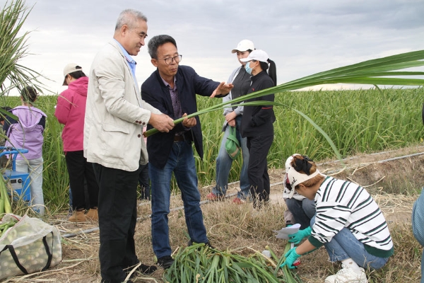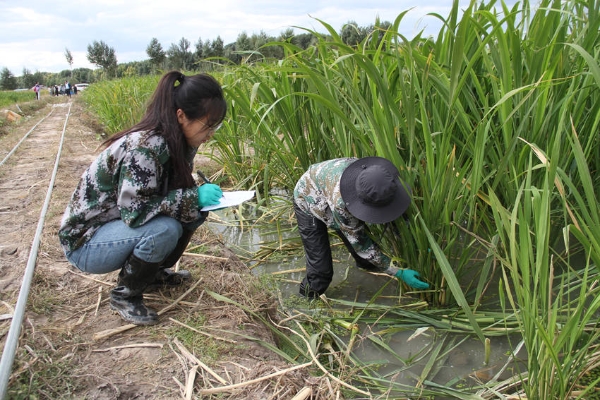 在鎮賚縣坦途鎮的蘇吉匯農業科技有限公司茭白田里,曾經白茫茫一片的重度鹽堿地,如今已化作千畝碧波,碧綠的茭白葉泛著油亮的光澤,隨風起伏,仿佛一片綠色的海洋。測產專家們就走進中國科學院東北地理與農業生態研究所在大田布置的控制實驗基地,交流研究進展和定位監測記錄的結果,大家對單項技術以及技術集成的應用效果表現出極大興趣和認可。專家組隨后來到生產田塊,“這片葉子顏色深綠,說明肥水管理到位?!薄皞€別葉鞘下部出現少量褐斑,后期要注意針對性處理?!睖y產還未開始,專家們就已俯身田間,或蹲或立,仔細查看茭白的株高、葉色、根系發育情況。他們時而用手指輕捻葉片,感受葉片的質地;時而用尺測量株行距,精準記錄數據。他們還不時與身旁的農戶和企業技術人員交流意見,為這片茭白田的豐收“把脈問診”。陽光灑在他們專注的臉上,汗水順著鬢角滑落,卻絲毫沒有影響他們工作的熱情。