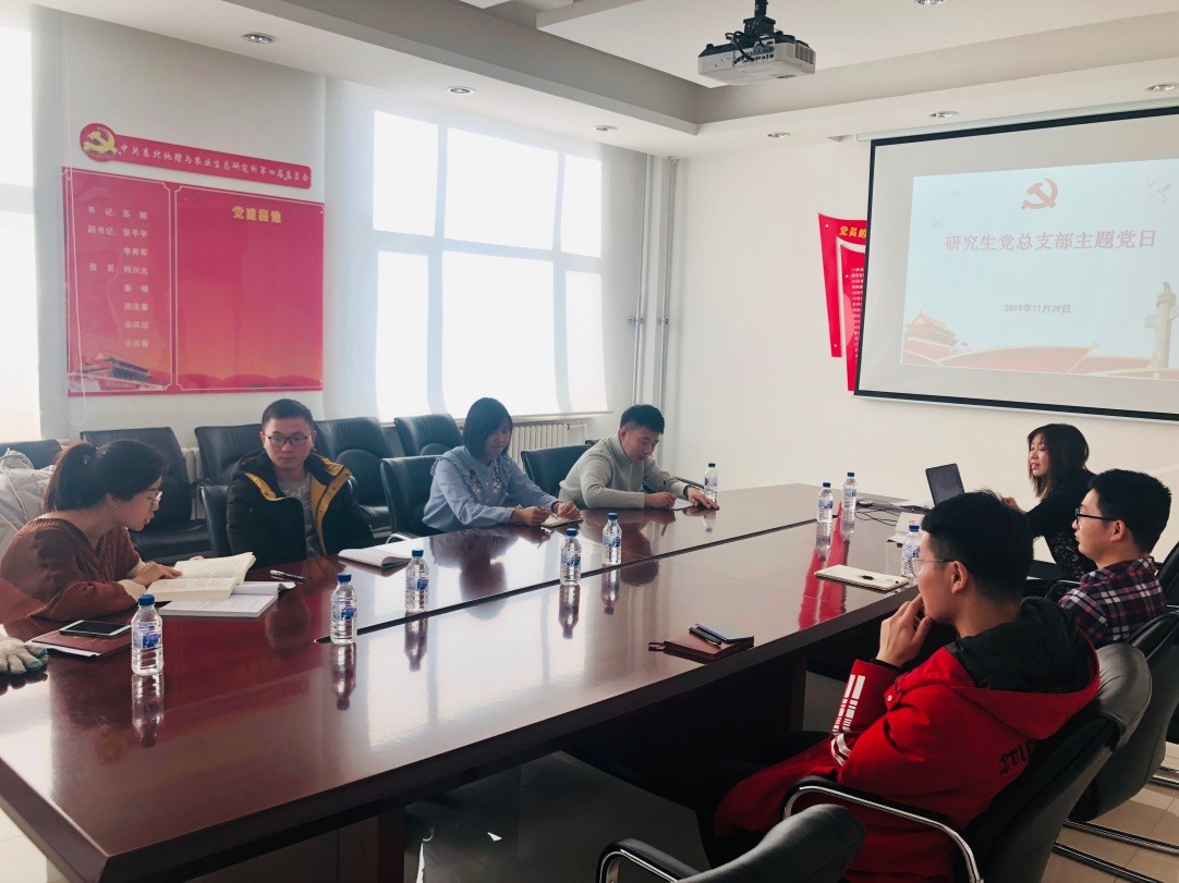 2019年11月29日上午,研究生黨總支在東北地理所綜合樓414會議室召開11月主題黨日學習活動。會議由研究生黨總支書記王玉榮主持,研究生第一、二支部的全體支委參加了此次會議。