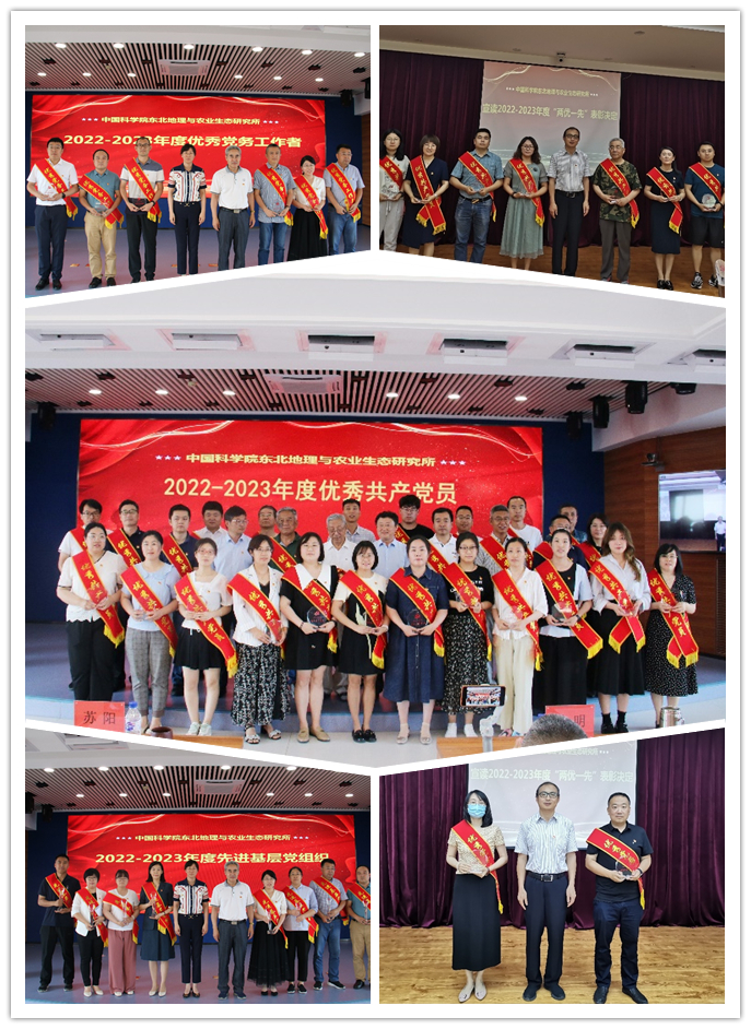 召開“兩優一先”表彰大會。為激勵基層黨組織和全體黨員堅定理想信念、砥礪初心使命、勇于擔當作為,更好發揮“兩個作用”,在建黨102周年之際,評選表彰一批東北地理所優秀共產黨員、優秀黨務工作者、先進基層黨組織,教育激勵廣大黨員干部積極投身研究所科技創新,為實現“黑土糧倉”科技會戰目標任務貢獻力量。所黨政班子成員為獲得2022-2023年度優秀共產黨員、優秀黨務工作者和先進基層黨組織代表頒發了獎杯、獎牌。