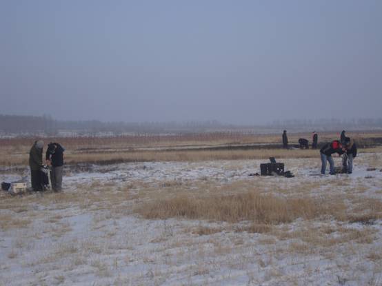 2009年~2010年的冬天格外地寒冷,皚皚白雪覆蓋了美麗的東北大地。在中國(guó)科學(xué)院知識(shí)創(chuàng)新重要方向性項(xiàng)目“土壤濕度與積雪參量高精度微波遙感反演機(jī)理研究”、國(guó)家自然科學(xué)基金項(xiàng)目“ 我國(guó)東北區(qū)雪蓋深度高精度被動(dòng)微波遙感反演方法研究”和“非均勻條件下積雪微波輻射特性觀測(cè)理解與模擬”的支持下,中國(guó)科學(xué)院東北地理與農(nóng)業(yè)生態(tài)研究所在持續(xù)開展近兩個(gè)月的戶外積雪參量遙感觀測(cè)后,聯(lián)合中國(guó)科學(xué)院寒區(qū)旱區(qū)環(huán)境與工程研究所、北京師范大學(xué)、香港中文大學(xué)、中國(guó)科學(xué)院對(duì)地觀測(cè)與數(shù)字地球科學(xué)中心和吉林大學(xué)等多家單位,由趙凱研究員領(lǐng)隊(duì),一行27人,歷時(shí)8天,在吉林省的西部和東部地區(qū),開展了野外積雪遙感聯(lián)合實(shí)驗(yàn)。本次實(shí)驗(yàn)的目的是在自然環(huán)境條件下,測(cè)量未經(jīng)人為干預(yù)的積雪遙感信息(光學(xué)、微波),與衛(wèi)星遙感數(shù)據(jù)進(jìn)行比對(duì),發(fā)展積雪參量反演模型,提高被動(dòng)微波遙感反演積雪參量(厚度、面積、雪水當(dāng)量)精度。