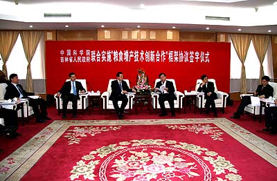 日前,中國科學(xué)院副院長李家洋與吉林省常務(wù)副省長竺延風(fēng)代表院省雙方在北京簽署了“聯(lián)合實施‘糧食增產(chǎn)技術(shù)創(chuàng)新合作’框架協(xié)議”。中國科學(xué)院常務(wù)副院長白春禮、吉林省省長韓長賦等領(lǐng)導(dǎo)出席簽字儀式并講話。施爾畏副院長主持儀式。