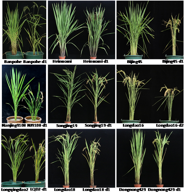 我所水稻分子育種學科組利用CRISPR/Cas9基因編輯技術對7個黑龍江省主栽優(yōu)質品種、3個南方優(yōu)質品種抽穗期基因Hd2、Hd4、Hd5進行了基因編輯,成功培育出早熟穩(wěn)定水稻品系(圖1)。這一研究不僅可以促進黑龍江省主栽品種北移、擴大種植面積,也有助于引進南方優(yōu)質水稻資源。與傳統(tǒng)的育種方式相比,這一技術具有高效、穩(wěn)定、快速等優(yōu)勢,將會更廣泛應用于育種中。
