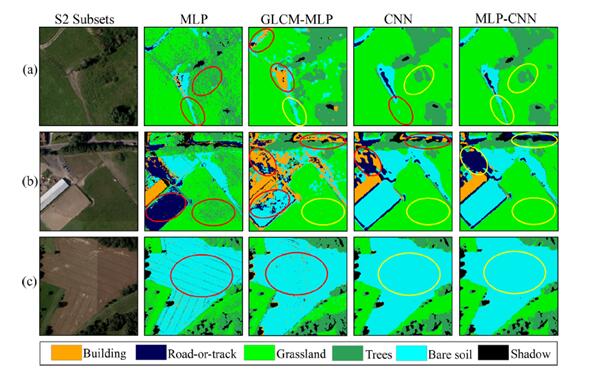 在遙感深度學(xué)習(xí)領(lǐng)域,研究人員針對極高空間分辨率遙感分類難題,基于規(guī)則融合手段充分挖掘卷積神經(jīng)網(wǎng)(CNN)與多層感知器(MLP)處理遙感數(shù)據(jù)的優(yōu)勢,開發(fā)了一種新穎的MLP-CNN分類算法,并利用極高分辨率航空影像對該算法進(jìn)行了充分驗證。研究結(jié)果表明,該算法在降低遙感分類“椒鹽現(xiàn)象”的同時,能充分挖掘影像的細(xì)節(jié)信息,是一種非常適合處理極高分辨率遙感影像的技術(shù)方法。