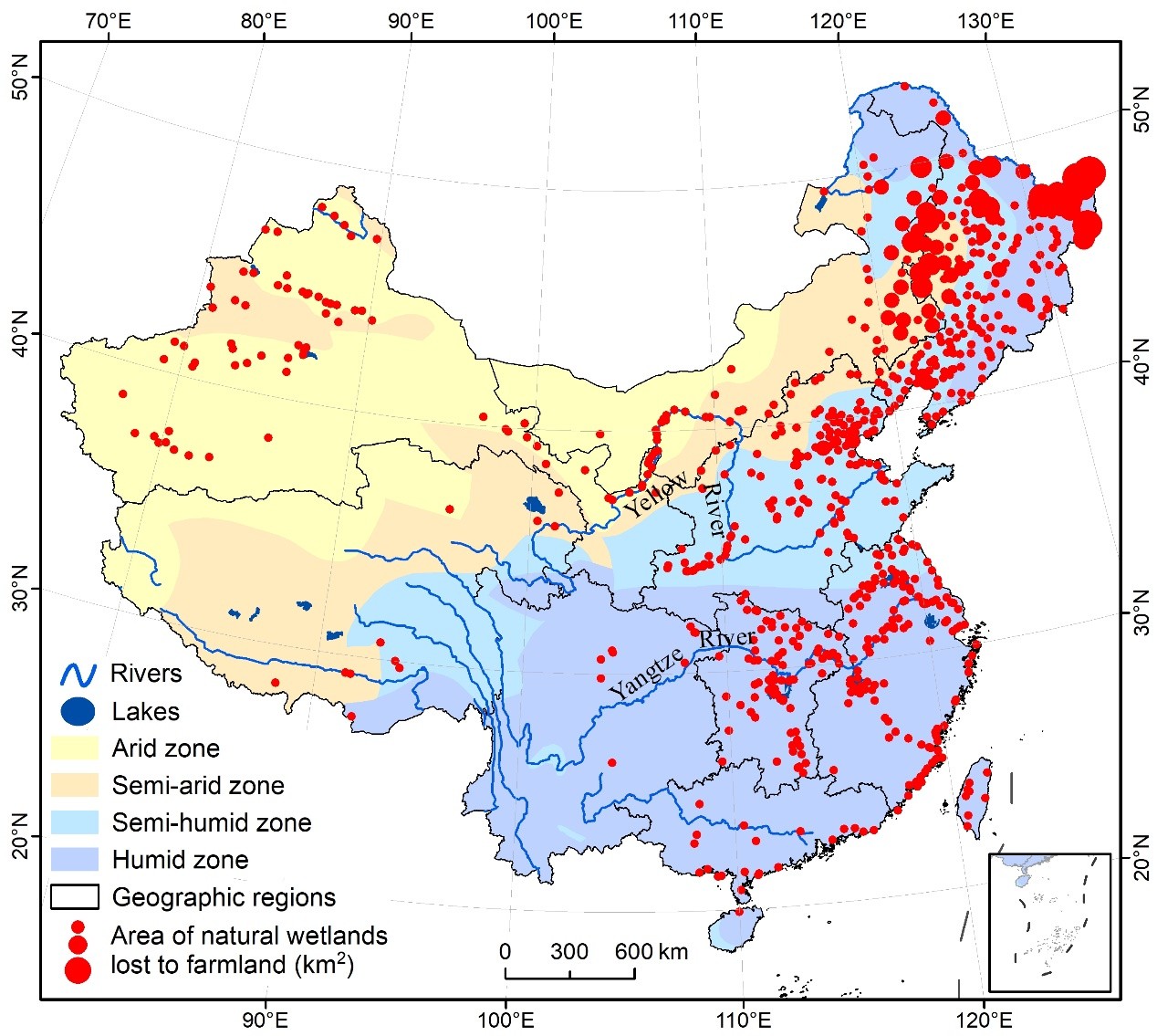 論文信息:Mao D.H., Luo L., Wang Z.M., Wilson M.C., Zeng Y., Wu B.F., Wu J.G.,2018. Conversions between natural wetlands and farmland in China: A multiscale geospatial analysis. Science of the Total Environment, 634: 550-560.