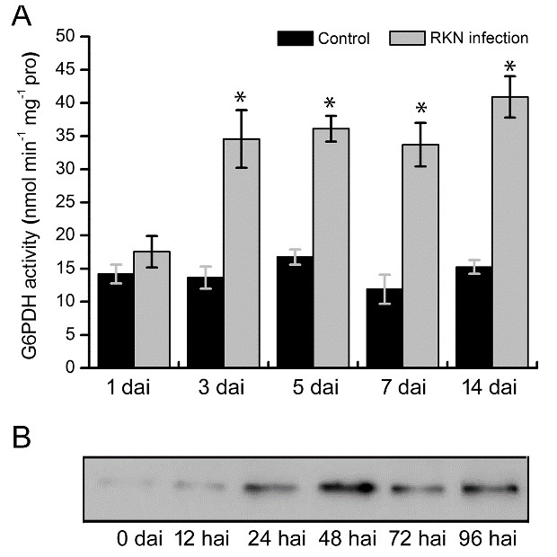 圖1 線蟲侵染導致G6PDH酶活及蛋白含量升高