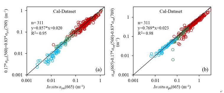 中科院東北地理與農業生態研究所水環境遙感團隊,在內陸渾濁水體葉綠素a濃度遙感定量反演方面取得重要進展。構建了一種新的內陸渾濁水體葉綠素a濃度估算算法(TC2)。TC2算法提出了一種新的假設用于更有效地去除葉綠素a吸收峰附近(~665 nm)非色素碎屑物質吸收信號。相比于經典三波段模型的假設,TC2模型的假設大大提高了葉綠素a吸收峰附近非色素碎屑物質吸收信號的去除精度,其對藻類色素吸收系數估算的平均相對誤差由經典三波段模型的65%降低為20%?;诖罅恳巴鈱崪y數據的驗證結果表明,相比于幾種經典算法,TC2算法大大提高了內陸渾濁水體葉綠素a濃度的估算精度。