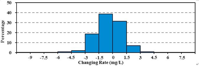 圖1 研究區(qū)水體TSM濃度變化率直方圖