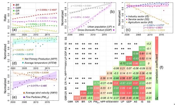 圖4. 土地動態與社會經濟生態指標的相關關系