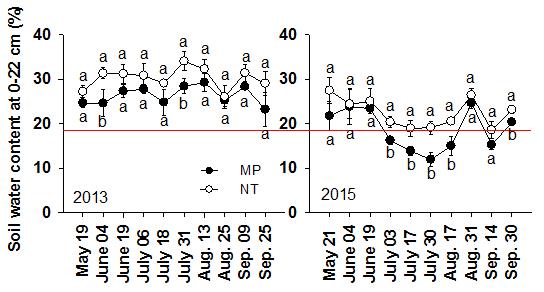 圖1 免耕和常規(guī)耕作土壤含水量