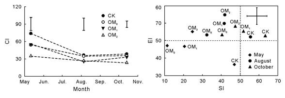 圖1 不同量有機(jī)肥處理下線蟲食物網(wǎng)指數(shù)