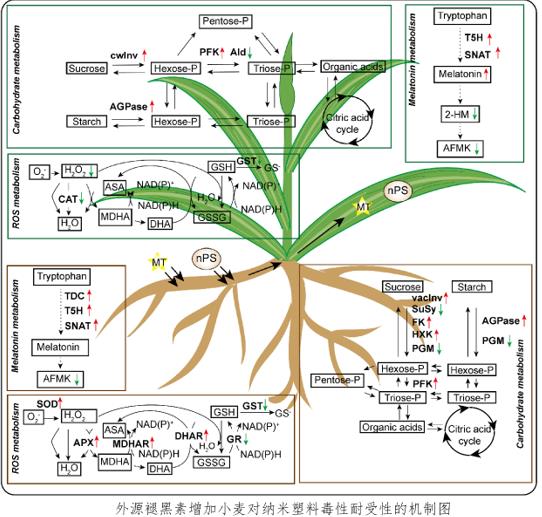 近年來,隨著塑料制品的大量生產與廣泛應用,塑料污染已成為世界范圍內的環境問題。聚苯乙烯納米微粒在土壤中的大量積累嚴重威脅了農作物生產和糧食安全。已有研究表明土壤中納米塑料的積累改變了植物根際微環境,納米塑料微粒可通過側根出苗點進入植株,進而影響其生長發育過程。褪黑素是一種可以誘導植物生物脅迫和非生物脅迫抗性的小分子物質,但是目前關于褪黑素與聚苯乙烯納米微粒互作機制仍不清楚。